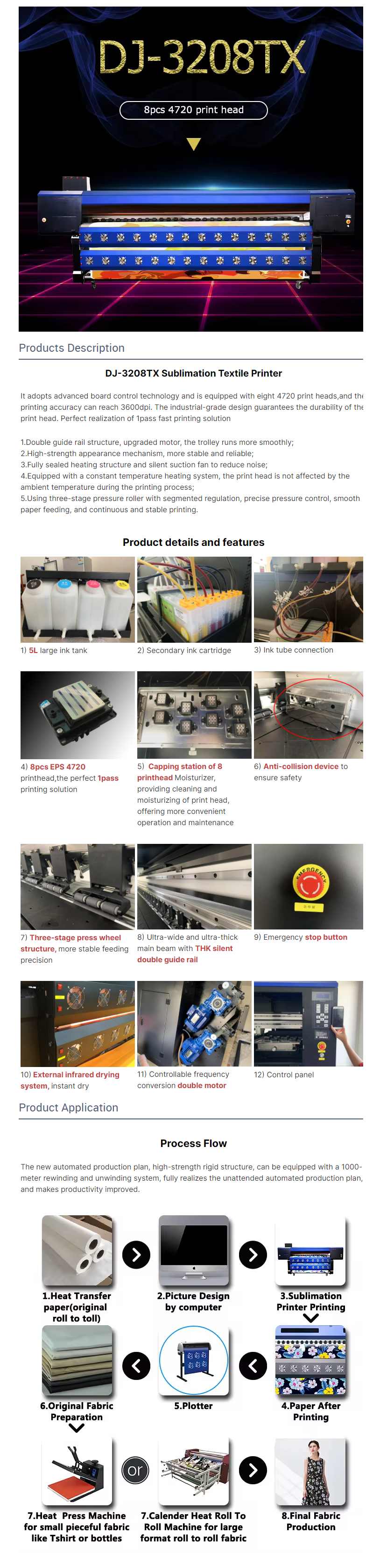 3.2m 8pcs 4720 Printhead Textile Sublimation Printer Heat Transfer Paper Printing Machine Dye Sublimation Printer